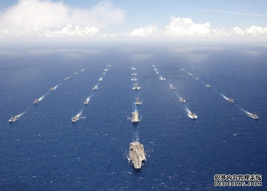 资料图:不久前,正在美国夏威夷海域参加2012年度环太平洋军演的22个国家舰只,组成庞大海上编队进行传统有武力展示秀活动。