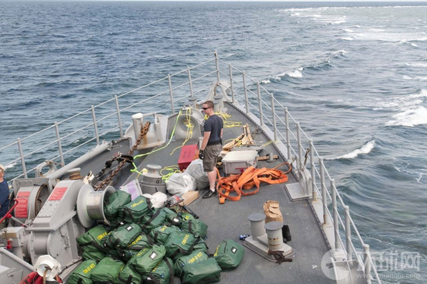1月底,美国海军人员紧急转移“护卫者”号上的物资