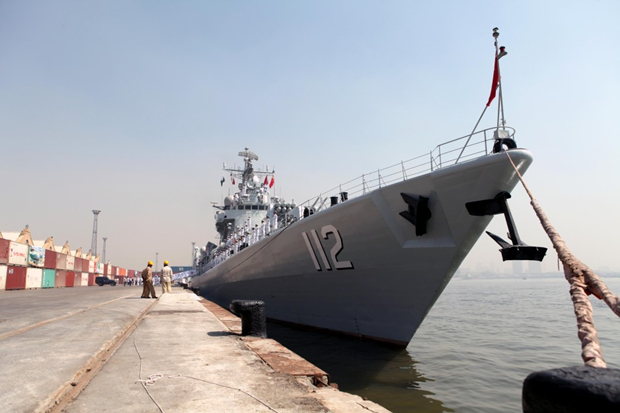 中国导弹驱逐舰“哈尔滨”舰靠港完毕
