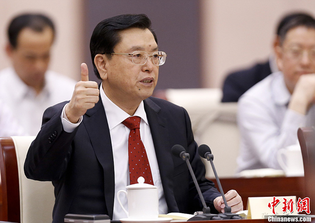 3月4日,中共中央政治局常委张德江看望出席全国政协十二届一次会议的民革、台盟、台联界委员并参加联组讨论。