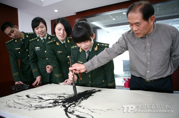 5月4日,江苏张家港边检站邀请张家港传统文化艺术院院长陈士君和上海世博会剪纸艺术展示大家龚保文走进警营,讲授传统文化,手把手教写书法、绘画和剪纸等传统艺术,陶冶了官兵情操,提升了官兵文化综合素养。