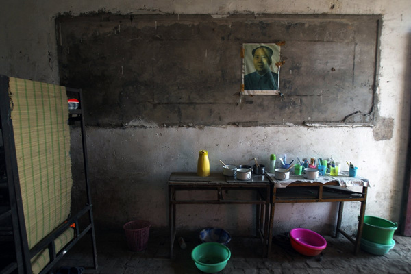 校园里墙壁上挂着“孔子”、“释迦牟尼”、“老子”、“周恩来”的画像。