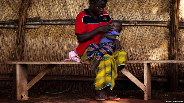 这位年轻女子叫Dieu Merci,她抱着她6个月大的儿子,她是被乌干达反政府武装上帝抵抗军士兵所强奸后而生的孩子。
