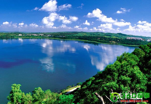 湖光岩:湖面落叶无影踪